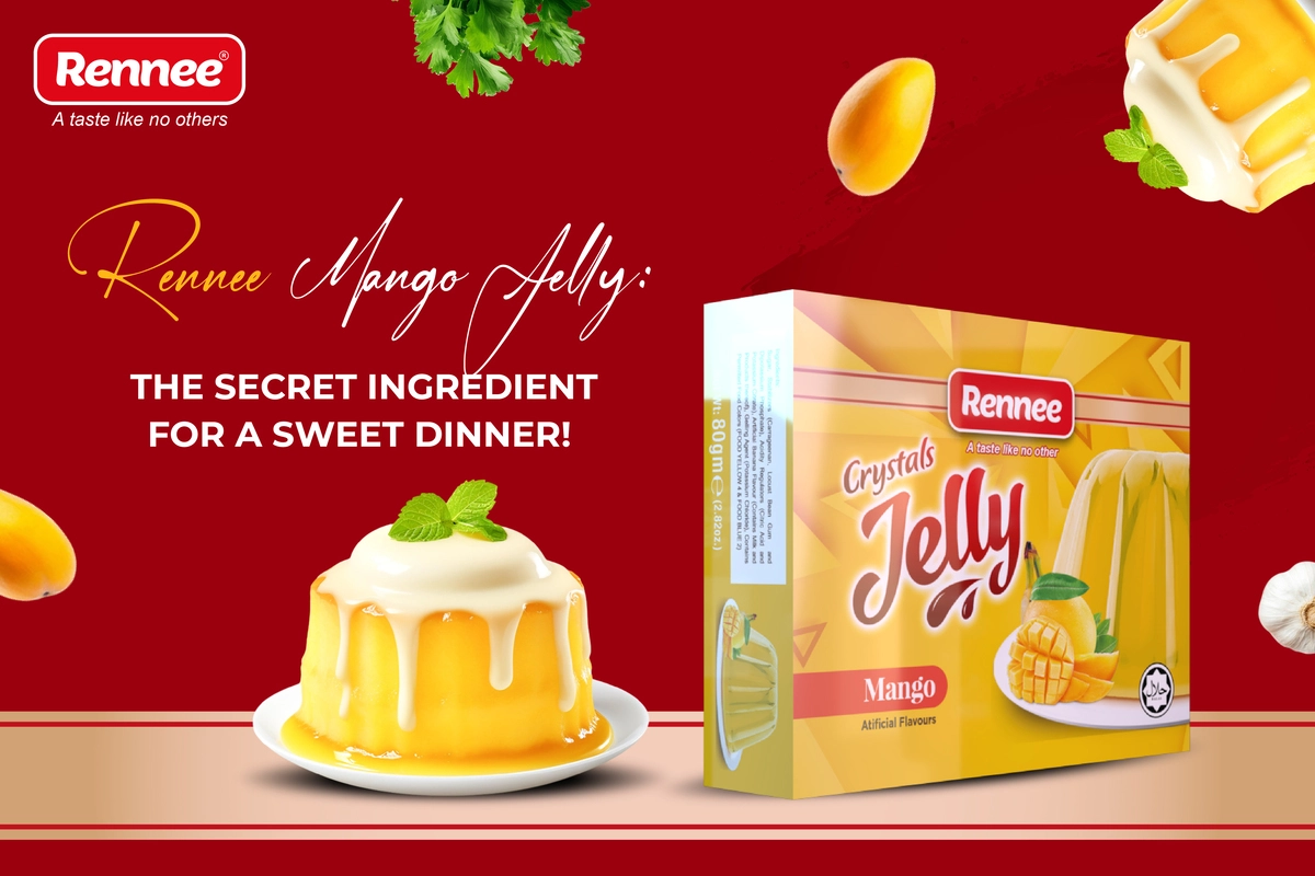 The fruity Renmee Mango Jelly makes the dining table look bright and gold in color. It is light and cool with a cool and refreshing effect which is just what you want to start your meal the right way.